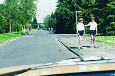 Kinder sind im Strßenverkehr besonders gefährdet. Daher müssen Sie als Fahrer hier besonders aufmerksam und vorsichtig sein. Die beiden Kinder könnten so in ihr Gespräch vertieft sein, dass sie den Verkehr um sich herum völlig vergessen. Sie müssen auch mit unüberlegtem Verhalten der Kinder rechnen. Vielleicht schubst das eine Kind das andere gedankenlos auf die Straße. Daher müssen Sie in dieser Situation die Kinder genau beobachten und langsam und bremsbereit daran vorbeifahren.