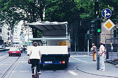 Nach dem Abbiegen des Lkw können Fußgänger von der gegenüberliegenden Seite kommen Nach dem Abbiegen des Lkw können Fußgänger von der gegenüberliegenden Seite kommen