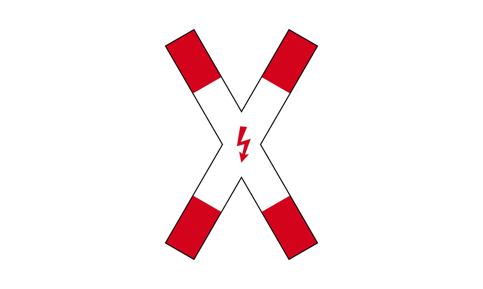 Der in der Mitte des Andreaskreuzes angebrachte Blitz weist auf eine elektrische Oberleitung oberhalb der Bahnschienen hin. Dieser Hinweis ist vor allem für die Fahrer von land- oder forstwirtschaftlichen Fahrzeugen von großer Bedeutung, da sie häufig mit besonders hoher Ladung unterwegs sind.